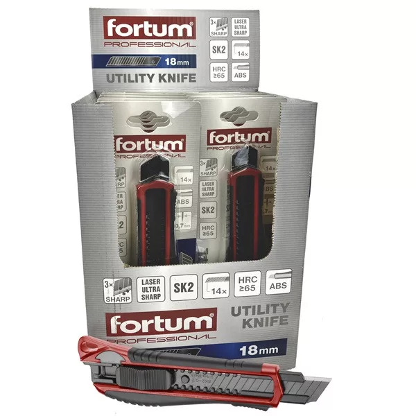 FORTUM tapétavágó kés, gumirozott ABS+acél házas; 18 mm, pótpenge: 4780003