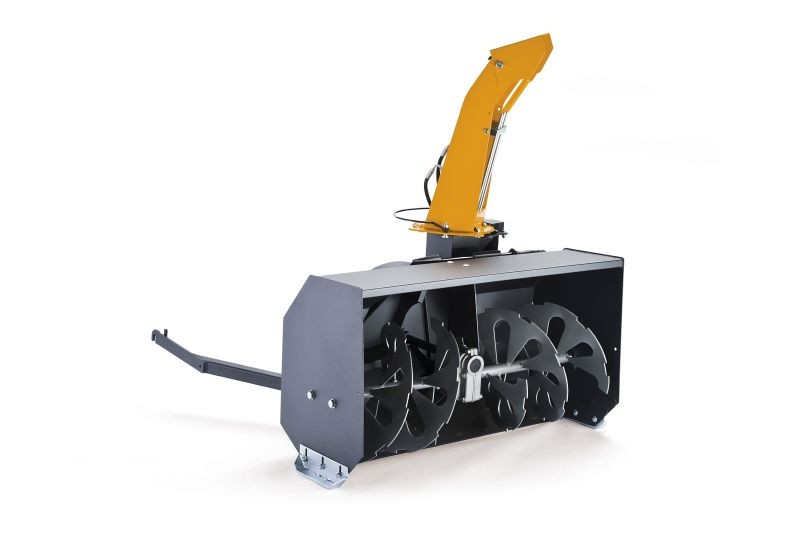 Kétfokozatú hidraulikus hófúvó a STIGA Park Pro 900 AWX frontkaszás fűnyíró traktorokhoz. 90 cm tisztítási szélesség, hószórás távolsága akár 12 méter, 215°-ban forgatható és 120°-ban dönthető csatorna.